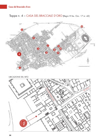 Casa del Bracciale d’oro Tappa n. 4 – CASA DEL BRACCIALE D’ORO (Regio VI Ins. Occ. 17 nr. 42) 12 6 5 7 11 3 10 8 2 9 4 4 1 UBICAZIONE DEL SITO VIA DELLE T VICO DEL FARMACISTA 30