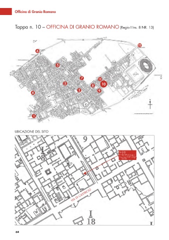 Officina di Granio Romano Tappa n. 10 – OFFICINA DI GRANIO ROMANO (Regio I Ins. 8 NR. 13) 12 6 5 7 11 3 10 10 8 2 9 4 1 UBICAZIONE DEL SITO VIA DI CASTRICIO 64
