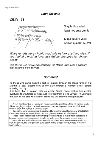 This offer of love for sale was incised at the Marine Gate, near a masonry